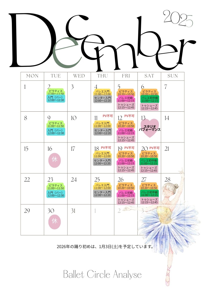 ・動きやすい服装、バレエシューズまたは靴下で参加してください(更衣室あり)。